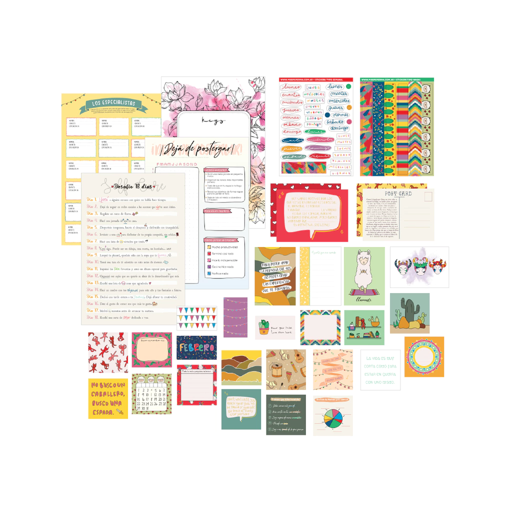 The Miss Journal Box es una caja que incluye todo lo que necesitás mes a mes para armar tu journal, planner mensual, scrapbook o espacio creativo. Todos los diseños que incluye son industria Argentina, creados con amor y dedicación por Miss Peperina. <3