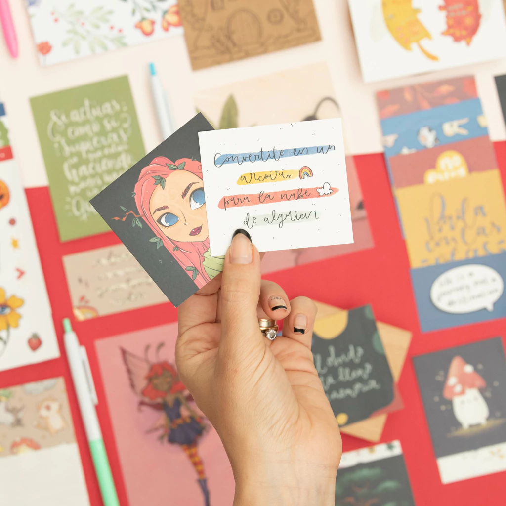 - 35 cartoncitos con diseño simplefaz en papel ilustración 300 gr de distintos tamaños.