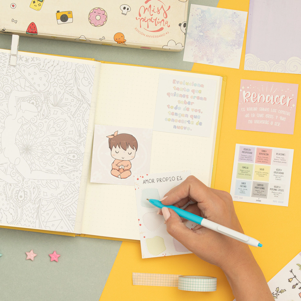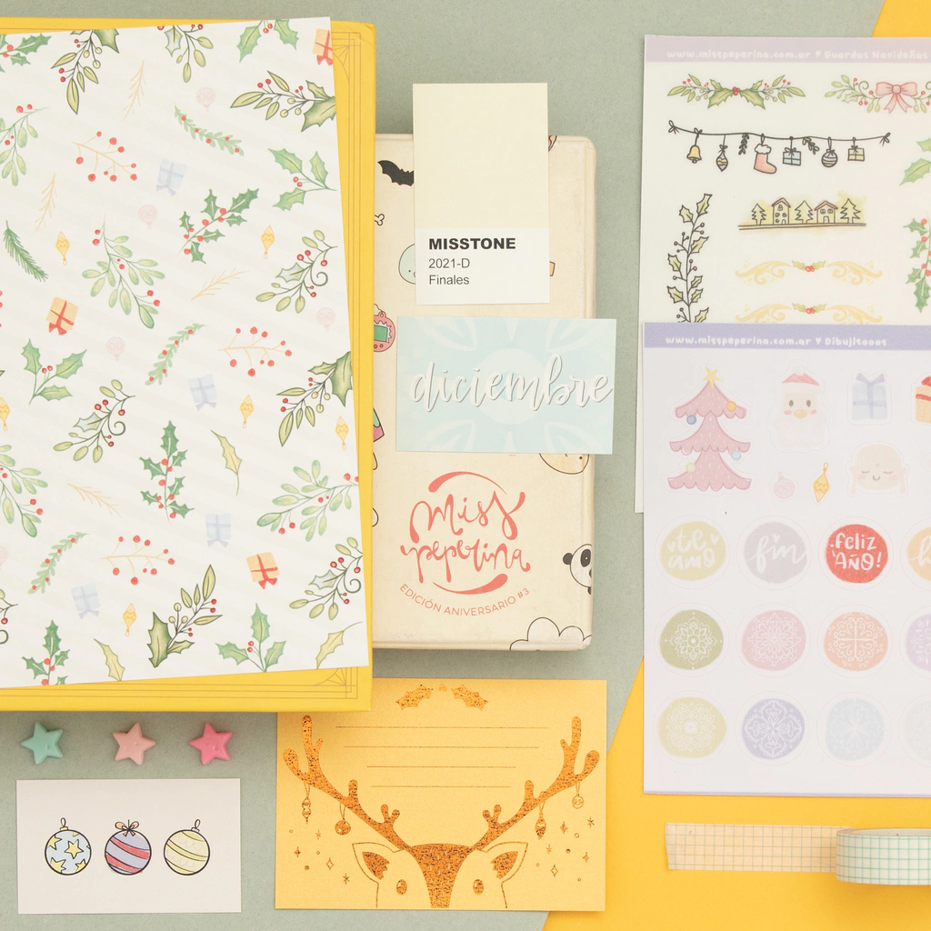 The Miss Journal Box es una caja que incluye todo lo que necesitás mes a mes para armar tu journal, planner mensual, scrapbook o espacio creativo. Todos los diseños que incluye son industria Argentina, creados con amor y dedicación por Miss Peperina. <3
