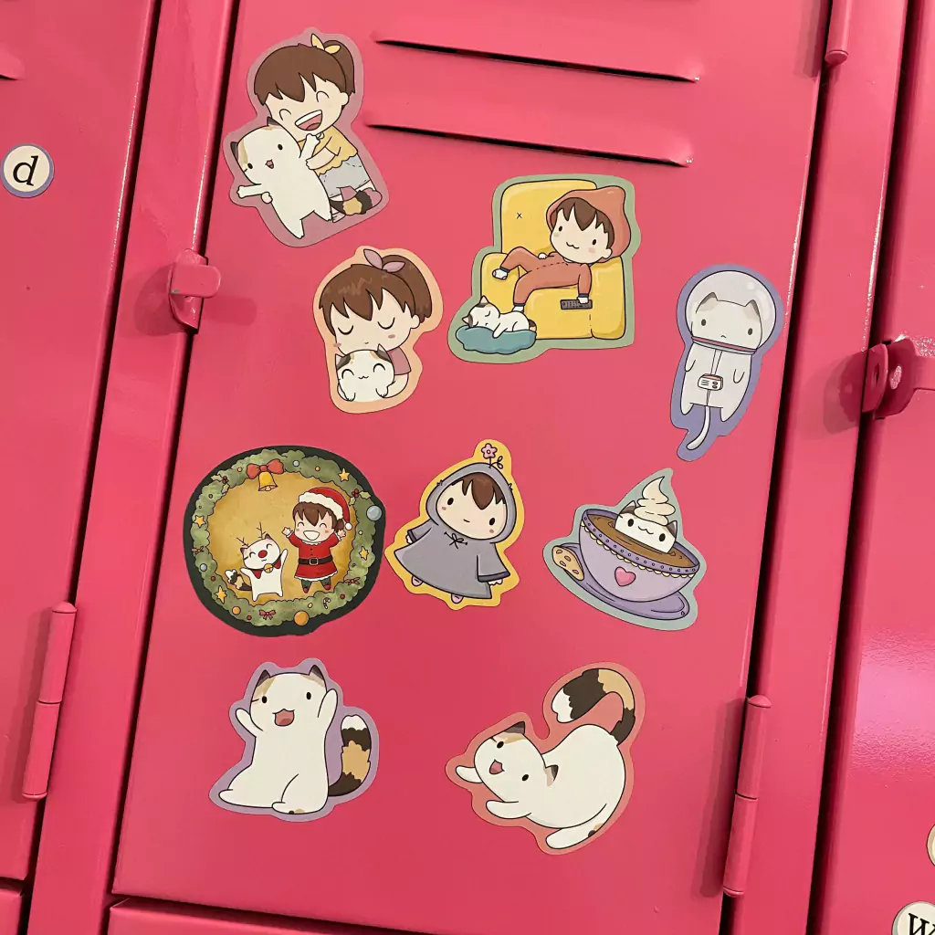 Trae 9 imanes de tamaños variados (el más grande mide 7 cm aprox) con diseños de Petite Peperina y Nuez