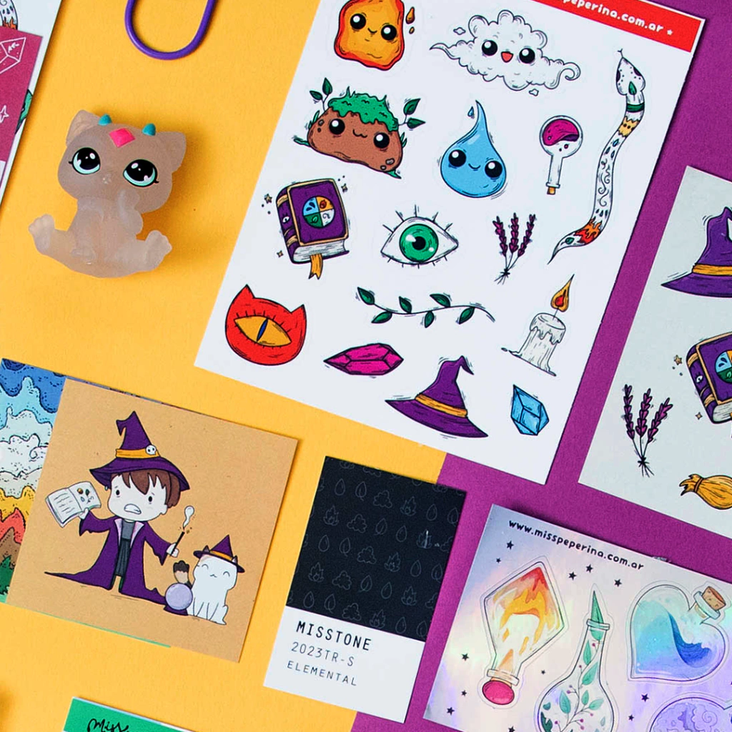 - 2 planchas de stickers troquelados en vinilo común full color.